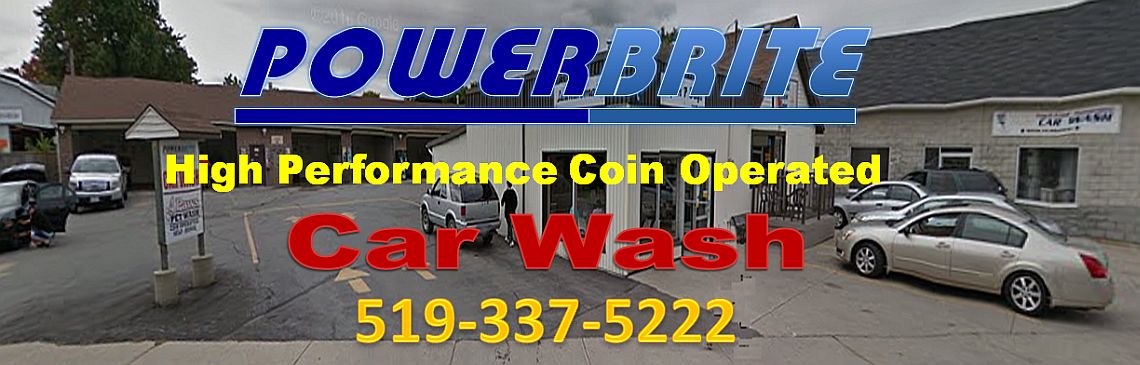 Powerbrite Coin-Opereted Car wash. 729 Ontario Street. Sarnia. Ontario. Conveniently open 24/7